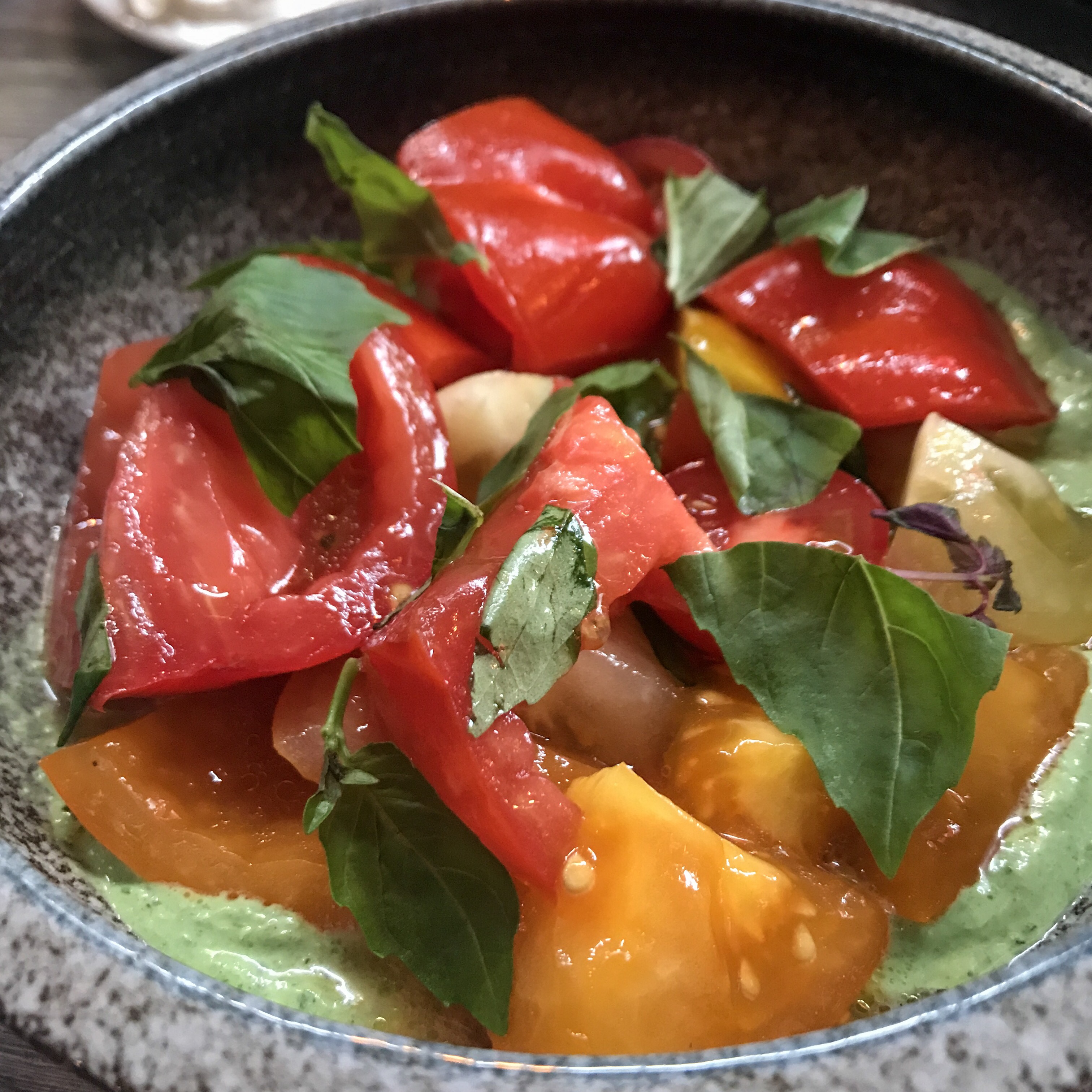 A side-serving of sweet heritage tomatoes may very well have been delivered directly from the basket of Demeter herself and are simply presented with a few torn basil leaves and “Greek goddess” dressing (delicious, whatever it is).