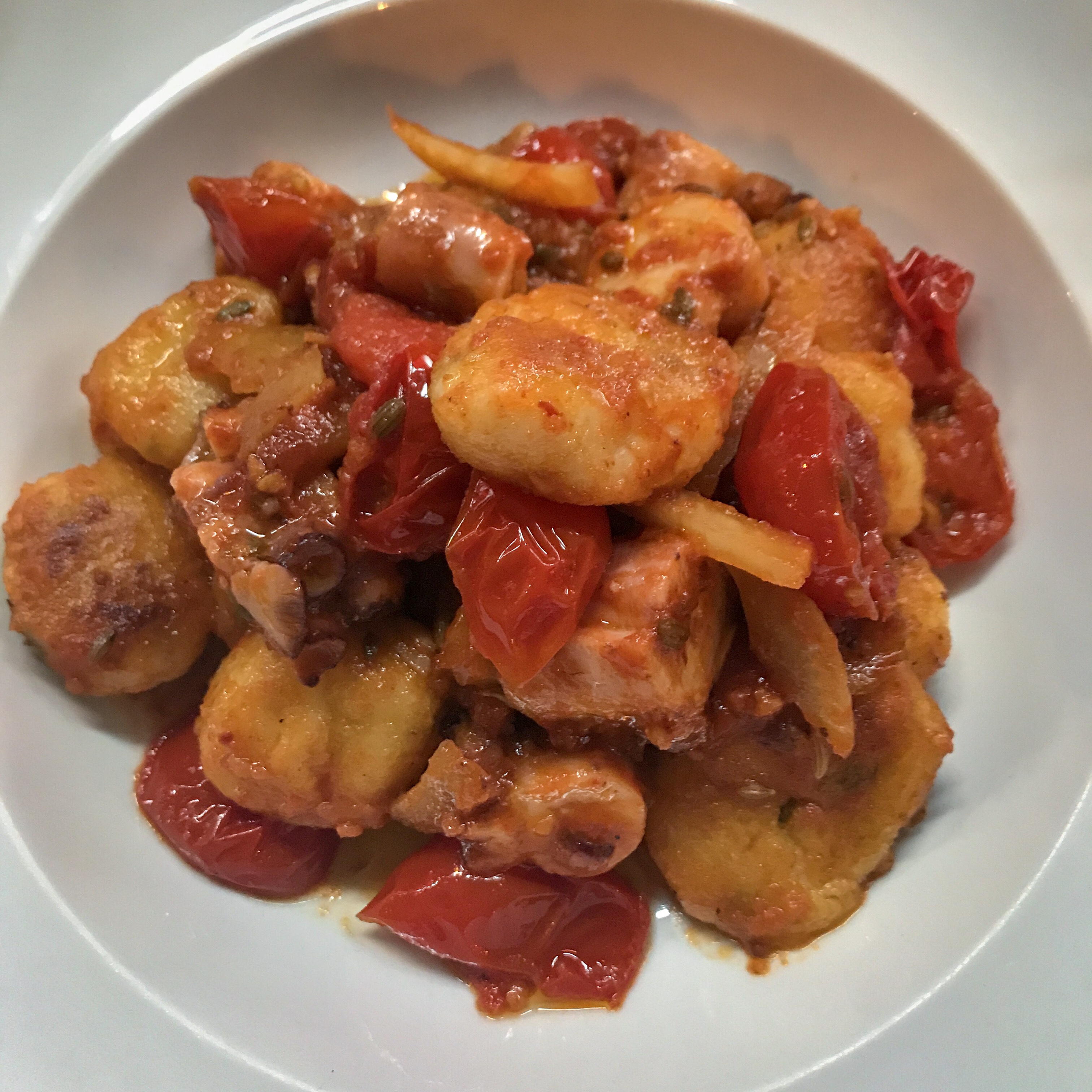 The lightly-fried gnocchi are delightfully pillowy and coated in a genuinely wonderful tomato ragu. Fat chunks of tender octopus and sharp capers give the whole dish a rustic kind of charm, reminiscent of a hilltop taverna overlooking the Aegean.