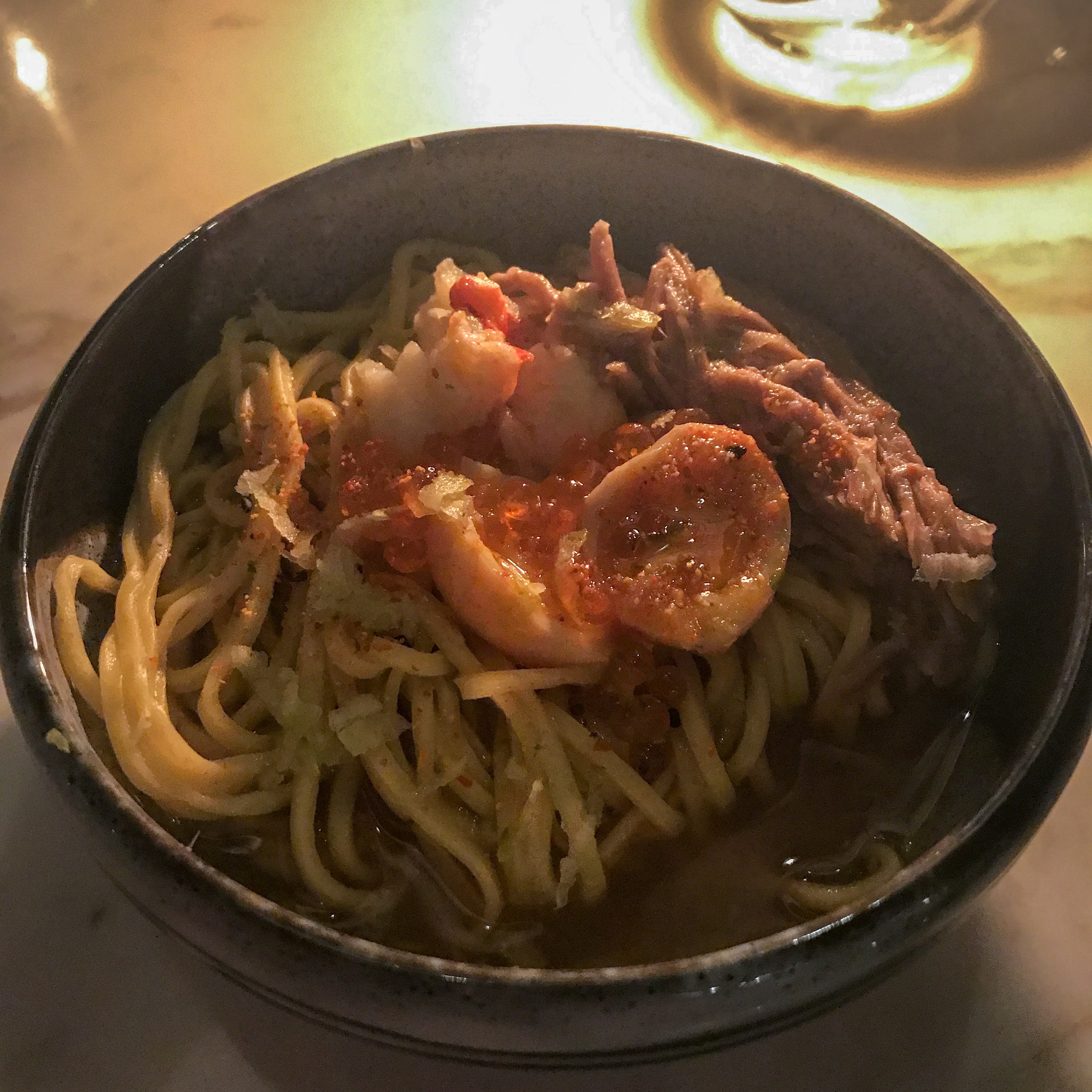 Italian and Japanese… Japanese and Italian… In the few days leading up to my dinner at Angelina, I spend a lot of time wondering what to expect; what this Eurasian fusion will look like; how it will combine the hearty, rustic charm of a trattoria with the precise, clean technicality of a Tokyo sushi bar. Tagliatelle al wagyu bolognese? Yes, please. Sushi pizza? No, thank you – almost as objectionable an idea as the ungainly sushi burrito that stalks American food courts.