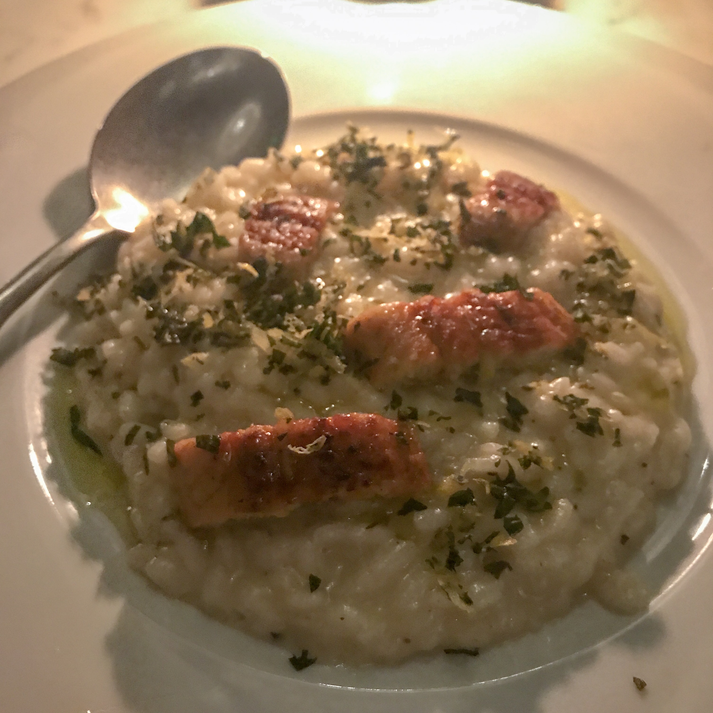 We also request one of the daily specials: a cacio e pepe risotto with slices of smoked unagi. The rice needs a heap more Parmesan and pepper to truly evoke its Roman namesake, but the chunks of grilled eel are bursting with potent umami and smoky sweetness. A sprinkling of shiso gremolata gives it a zesty flourish.